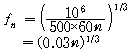 베어링의 사용조건으로서, 베어링 하중 P 및 회전속도 n을 주어, 기계에 사용되는 베어링의 설계수명으로 피로수명계수 fn을 정할 경우 베어링에 필요한 기본동정격하중 C는 다음식으로 구해진다.