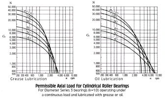 또, 베어링의 회전속도가 극히 낮은 환경, 허용회전수의 50%를 초과하게 되는 경우, 또는 내경 200mm를 초과하는 대형 원통 로울러 베어링인 경우에는 윤활, 냉각 등에 대해 각각 충분한 검토가 필요하다.